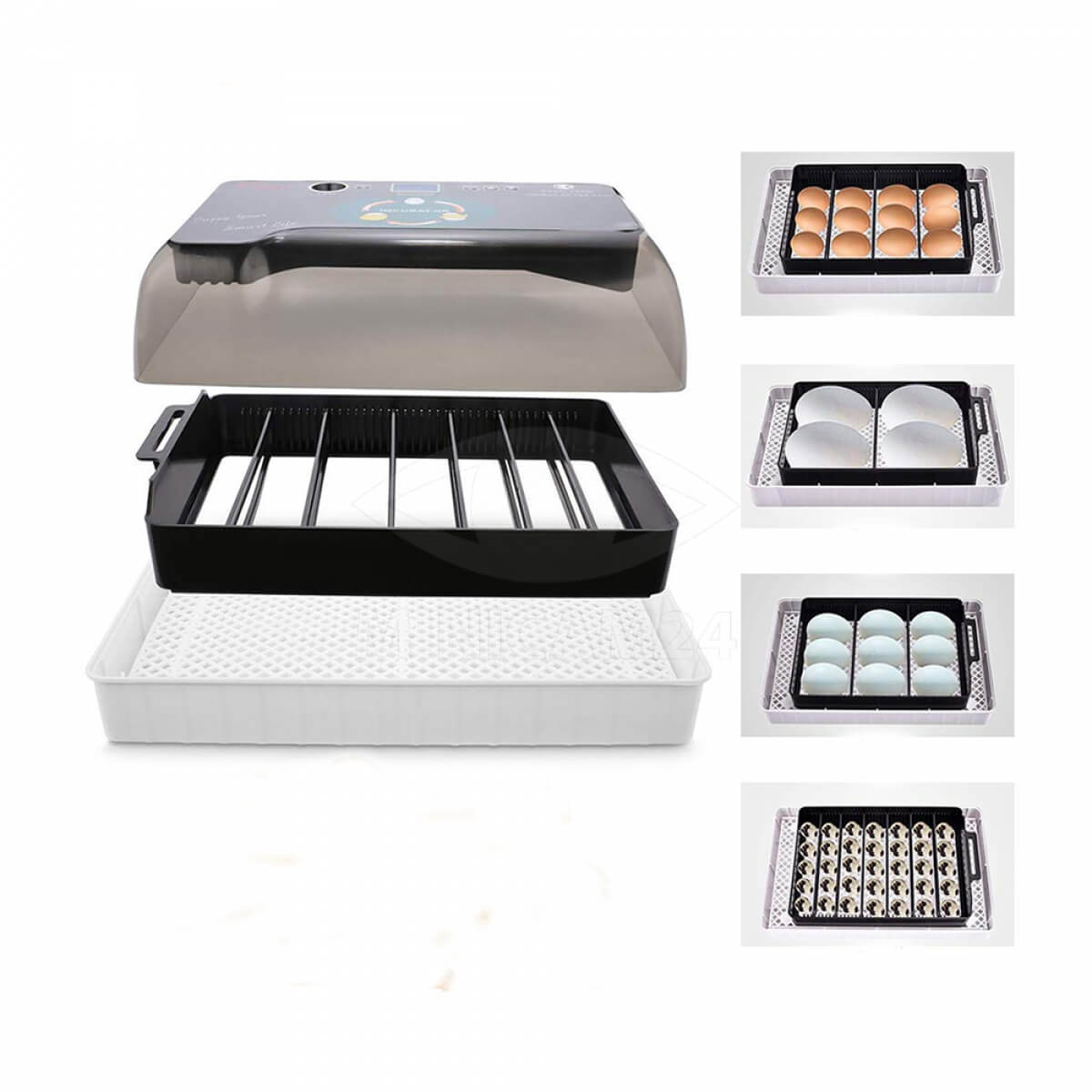 Малогабаритный инкубатор предназначен для выведения цыплят. Прибор вмещает 12 куриных яиц, также подойдет для утиных, гусиных и перепелиных яиц. Температура в камере поддерживается с помощью встроенного термостата. Предусмотрена функция автоматического переворота яиц. Питается прибор от сети переменного тока 220 В. Потребляемая мощность не превышает 40 Вт.