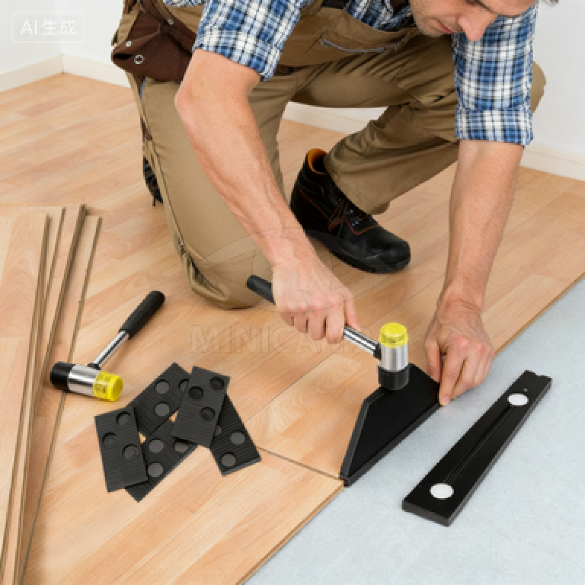 Набор инструментов может использоваться для укладки ламината и композитных полов из массива дерева.